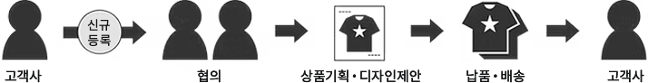 콘서트나 뮤지컬 등에서 판매되고 있는 아티스트 굿즈나 관광지에서 판매되고 있는 지역 특산의 관광티셔츠 등 판매용 상품의 오리지널의 가치를 기획부터 프린트가공까지 제공해